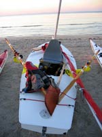The start of the race itself was very laid-back with a ‘group-hug’ about 15 minutes prior to the start, a verbal 5-minute warning then apparently a ‘go’ that I didn’t even hear. Some racers ran wildly towards the water to get going while others were a lot more relaxed. The person patiently cleaning sand off of his equipment was heard to say: “what’s 15 minutes over 8 days?” The last off of the beach was a Sea Pearl; he had to kedge his boat off of the beach with the help of some PVC rollers and a bow mounted winch.