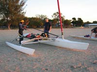 Saturday March 4, 2005 was the start of the Everglades Challenge human powered and wind powered boat race from Ft. Desoto, Florida to Key Largo, Florida, a distance of approximately 300 miles. The race has four classes of boat, from kayak and canoes with no rigs, downwind rigs, stow-able upwind rigs and small sailboats. The racers are encouraged to help each other during the race but can accept no help from others. There are four stages of the race and you are required to stop and sign in at each checkpoint. For complete rules and information, please see the WaterTribe web site: