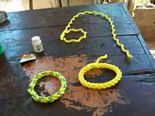 Years ago I read in Hervey Garrett Smith´s book "The Marlinspike Sailor" how to make rope grommets. As I was rigging a small boat I had built with Jim Michalaks Mayfly 14 rig I decided to use Miks (Michael Storer) idea and mount the blocks using rope and decided to make grommets instead of knots for asthetic reasons, which is why this is also to you Mik. Jim suggests a piece of plastic pipe to keep the yard from flying away in the wind, but I thought a grommet again would be at least more asthetically pleasing, so I took some pictures. If you want to put this in the magazine, heres how to make a grommet -