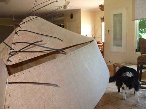 Ahoy there fellow boat builders (and lurkers) - I've been a bit too absorbed in what I'm doing to take a lot of pics, no helpers around as the rest of the family is still away on holidays. However there's an upside to that as you can see I'm working in the large, open plan kitchen/family/dining room. In airconditioned comfort: of course I won't be doing any sanding in here but at least I can glass the boat away from the high humidity outside. And yes I've measured up the doorway to make sure I can get it outside again!