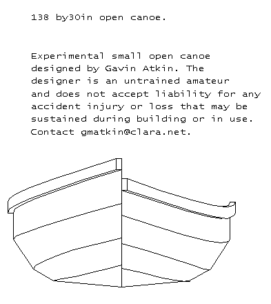 Gavin Atkin designed this lovely little lapstrake canoe for a friend and has generously offered the plans as a free download. Currently he is even building one for himself. Below are the building notes which come in the zip file, as well as a few samples of the drawings which are in both .gif and .dxf formats.