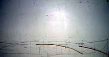 This worked out pretty well too. The steps in the reefing process for this ketch plan are shown in the next several photos. In each one there is a metal bolt that indicates the CLR (center of lateral resistance) and an orange thumb tack the shows the CE (center of sail effort). The calculations for CLR and CE were done using the methods in Dave Nichols book. On the masonite the CE of the individual sails can be marked down (and erased, and marked down, etc, etc.), and then the combination figured.