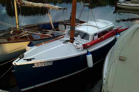 Johanna was launched on the evening of June 11th. She performed flawlessly in the very light conditions and I spent a comfortable night on board. She was on display at the Beale Park Boat Show all weekend and the the bonus was that on Sunday she picked up the Watercraft Magazine award for "The most innovative home made boat".