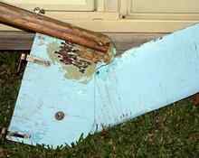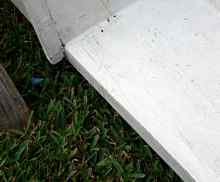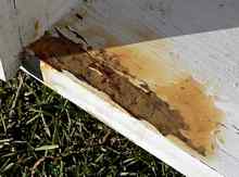 | The plywood looks almost normal under the paint, but rot is lurking. |