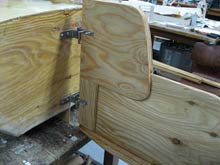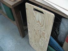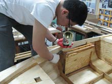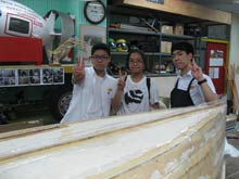 The centerboard was just like a simple wooden plate. We cut the thick plywood into shape and just spread varnish on it. We put fiber-glass on all sides of the body to strengthen and waterproof it, but later we found out that this work had made her much heavier.
