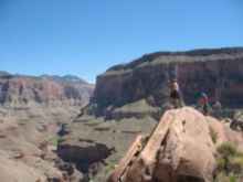 Cece and Natalie Mortenson about to begin the long hot descent into the Tapeats Creek drainage near Thunder River. Not quite halfway done with the loop; more than halfway out of steam.