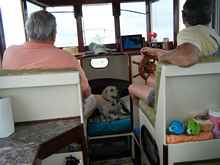 In the picture of me on Helen Marie I was hoping that they'd get a picture of the water blasting out the bottom of the boat but I think they were mesmerized watching it come out. You can see some draining. There are two 2 inch holes in the bottom that drain 90 gallons of water when the boat is pulled and it is quite a show, some of the spectators even had to crawl under to see where it was coming from.