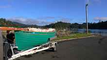 The launch ramp on Misery point, (near Seabeck, WA) was a shallow water ramp that required my trailer extension. It worked pretty well considering I still needed to almost bury the rear wheel of the Sports mobile. Dean was of great assistance here. He brought along some hip waders, and had no problem getting into the water to help.