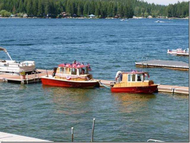 Washington Dan or maybe I should call him Repurpose Dan is shown here with two of the boats he "rescued" from a timely death. The little one seems to have a running motor but the big one doesn't seem to have a motor at all so it got towed. He seems to have this particular design down pretty good but has trouble letting go of a dollar to get a new motor to push the things and no Dan, a "new" 1976 Johnson isn't what I mean. You and Howard are just alike, "it just needs a little more work and it'll be good as new".