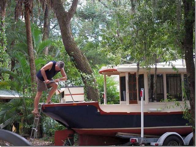 Another simple boat, if you don't count the hydraulic pumps and such; the Mega yacht's still coming along. We should be able to drag it out with about two inches to spare. We can't finish the roof till it's outside. Howard made a major effort and cleaned out the decades of built up stuff down in the cabin.