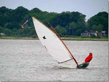 Kevin Lott is still working on his Cortez melonseed, I'm tempted to make another one myself just to get to play with the smooth hull. I sent this picture of me in Laylah to remind him of what he'll have when he's finished. These little things are so much fun. Notice the lack of reef lines on this new sail, they just screw up the shape.