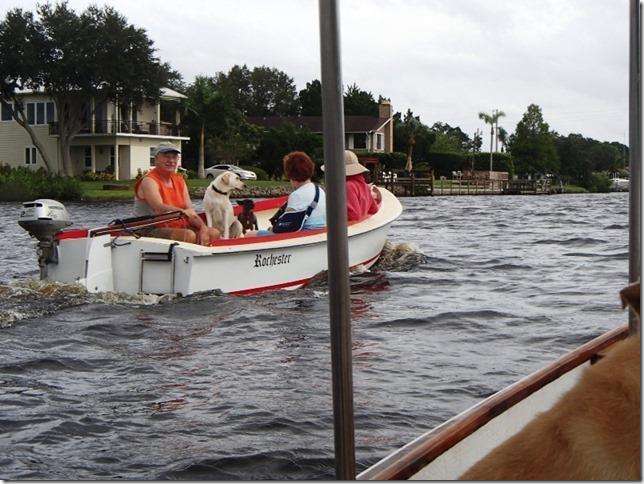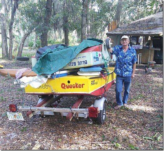 Stan loaded up his Puddle Ducks to go for a race along the beach and broke a spring on the trailer. Being Stan he know just what to do. He pulled out a couple of bungee cords, wrapped it all up and went on his way. I don't think I've told you this but Stan can come up with the most creative solutions to problems better than anyone I've ever met. Once I was out in the middle of nowhere with Stan and Michelle in a small boat with a 5 hp outboard. We were along the shore of Tampa Bay doing something with sea grass and when it was time to go home I pulled the starter cord and it broke off in my hand. Oh shit, what do we do know. No tools, it's getting dark and it's a two mile walk from where we were through the water along the shore to the nearest human then who knows how long to figure out how to get the rig back to the ramp. Stan is calm and says no problem, I'll flip start it. This is something that I bet none of you have even thought of doing, in fact I bet that no one has ever done this before. He took a small line, tied a loop in one end, put the loop over one of the blades on the three blade prop, wrapped it around a couple of times and pulled. We had to have it in gear to turn over the motor and if it actually started I had to get it in neutral really fast or no telling what would happen. I could just see Stan's fingers and arms flying all over the place slinging blood in the water for the sharks. Well, believe it or not, the sod started on the second try and everyone had all their fingers. We made it back to the ramp a little after dark. Whenever I tell this story I get looks of disbelief and I'm sure they can't picture this being done. I do not recommend anyone doing this ever and I would never actually do it myself but I'm glad I was there to see Stan do it.