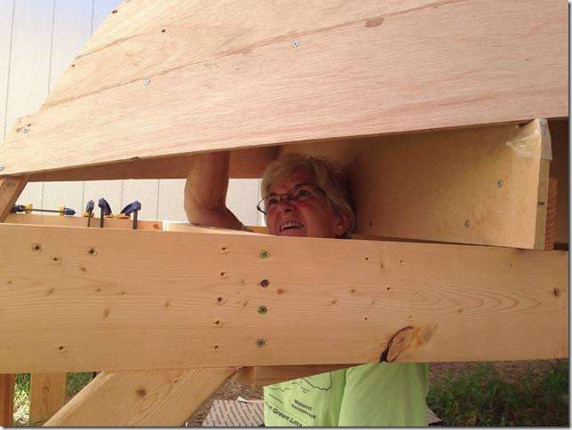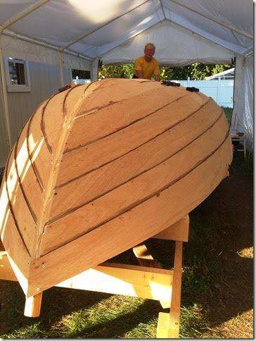 Rex and Kathy can put out some really great boats and then give them away. This one is going to be a Caledonia yawl. I already have the first bid in for the boat, trailer, sails and all of the other stuff they they invariably throw in, $5000. I know that sounds ridiculous but I think that's what they took for the No Man's Land boat and it was worth twice that. They're like the rest of us, we can build um but suck and selling them. As you can see, Kathy does the hard part. Rex is still going with the "I broke my leg and can't get under there" story.