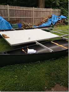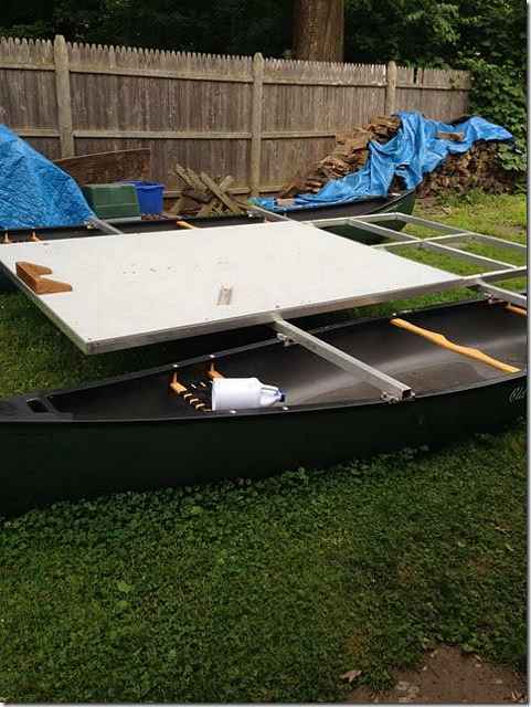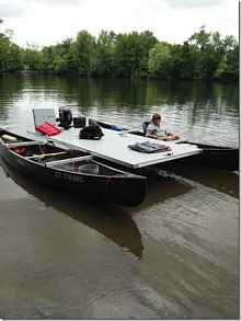 Crazy Steve's brother Marshall wanted a fun light easy pontoon boat that he could carry in his truck and came up with this. It's brilliant, two canoes with aluminum cross arms and custom clamps. He was inspired with this idea after a trip to our shop and Tiki hut showed him that anything is possible if you let you imagination run free and don't listen when "they" say it can't be done. Way to go Marshall!