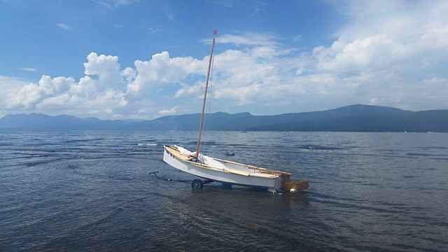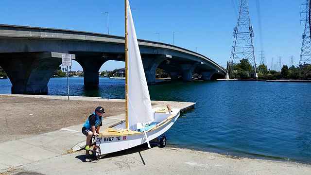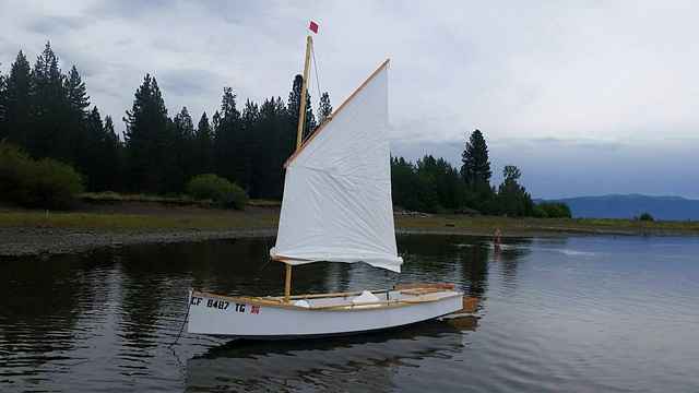 Sailing it – is interesting. With no seats at all inside it was awkward at first. I’m not a natural floor-sitter, I have to admit. I started using a footstool to sit on, which adds another step to tacking (move tiller, kick lose mainsheet rope towards back of boat, lift your butt, move the seat, duck under the boom, sit back down, check the loose mainsheet rope isn’t caught under the seat). During the strong windy days the other week, I sat back on the floor again. When the boat is heeling I find myself sitting on the tilted bilge board ‘standing’ on the opposite side. The boat won’t lean that far before it starts taking on water. I haven’t capsized it yet.. I know, I’m a chicken. The longer I leave it, the closer towards winter it’ll be, and Lake Tahoe (at 6500 feet) gets seriously cold in winter. I need to do a capsize test pretty soon.
