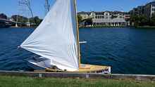 The boat moves fast, it is long and thin, and slippery. With the new mast it picks up speed quickly. With the old mast, the lug sail would spill too much wind. I had the lug sail reefed to about 55 square feet because the mast would bend about 20 degrees to leeward, causing mild panic in me. Performance-wise, it was a bit frustrating. The boat would get up to a mild plane then just seem to hesitate. I haven’t taken the new mast out in strong enough winds to really see what it can do, but I’m hoping it’ll pick up enough for me to get my butt out on the gunnel and really get it moving. (Note to self – add toe-straps before you do that). If the boat doesn’t get moving fast, I’ll seriously regret not building a GIS. I believe it will though, just needs more tweaking.
