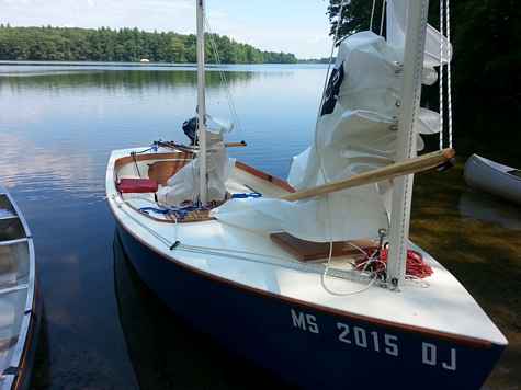 I took the Blue Canoe out under sail yesterday. The sail is cobbled together, but it was enough to go play around a bit. I'll make the designed sail soon, but a boat on the water is better than two in the garage.
